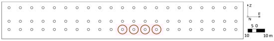 The images were shot at a distance of about 15 m from the dam; the Ground Sample Distance (GSD) equals 2.1 mm. The images were shot every 1.87 s, and the images overlap by more than 70%. Each image size is 7360 × 4912 pixels, with a resolution of 350 dpi. Every image is characterized by a minimum of four GCPs to allow for the orthorectification procedure [].