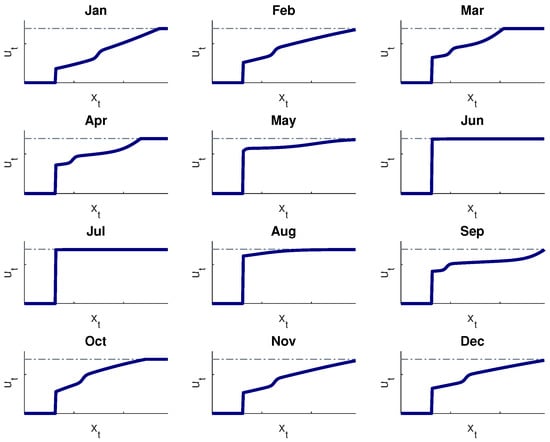Figure 9 illustrates the link between storage and release for Lake Nasser, in the different months. It is apparent that they can be interpreted as instances of a classical piece-wise linear decision rule.