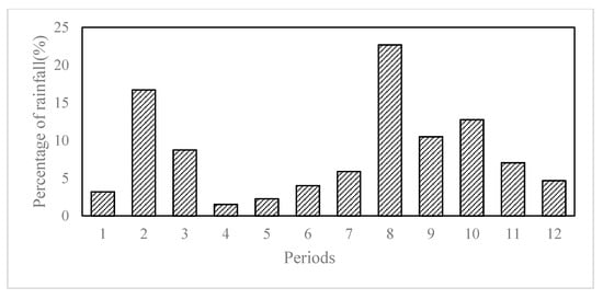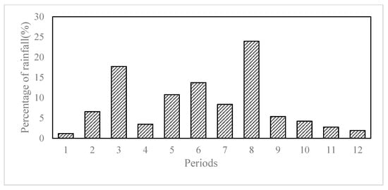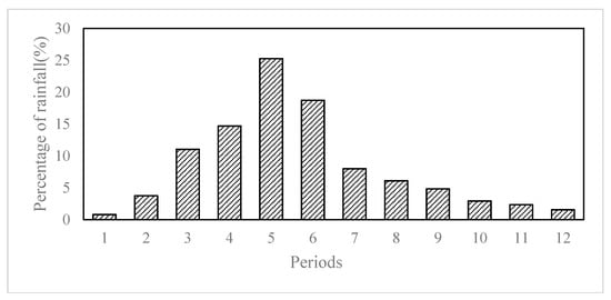 Each rainfall event is divided into n periods, and the percentage of the rainfall in each period is expressed as: