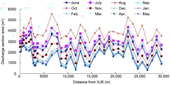 Discharge section area for each month during typical dry years in the study area.