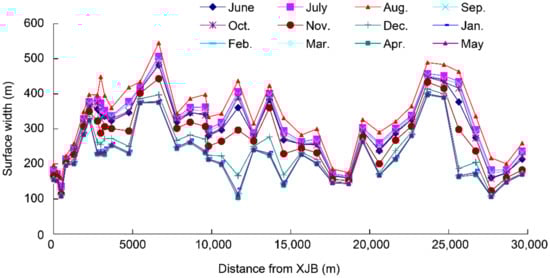 Surface width for each month during typical dry years in the study area.