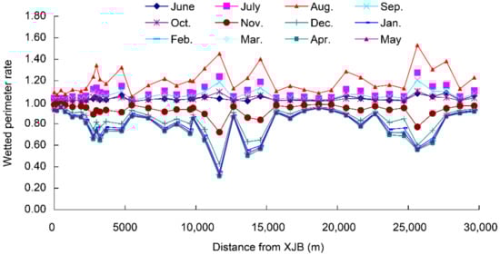 Wetted perimeter rate for each month during typical dry years in the study area.
