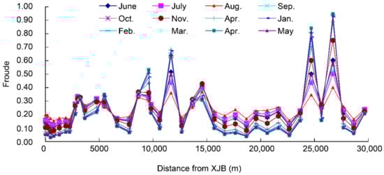 Froude for each month during typical dry years in the study area.