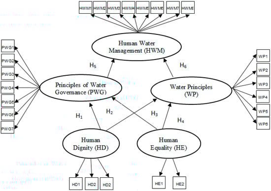 Hypotheses were designed in order to reduce social, cultural, economic and normative inequalities among communities [60] by improving the living conditions. We were interested in demonstrating whether these three groups of water management could enhance impoverished dwellers’ living conditions. We were interested in demonstrating if the Human Water Principles (HWP) or either “Human dignity” (HD) and/or “Human equality” (HE) improve the Principles of Water Governance (PWG) and Water Principles (WP) in order to enhance impoverished dwellers’ living conditions (HWG).