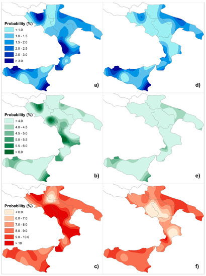 - Longobardi, A.; Buttafuoco, G.; Caloiero, T.; Coscarelli, R. Spatial and temporal distribution of precipitation in a Mediterranean area (Southern Italy). Environ. Earth Sci. 2016, 75, 189. [Google Scholar] [CrossRef]