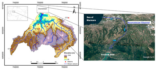 Yuvacık Basin DEM, station network and downstream region.