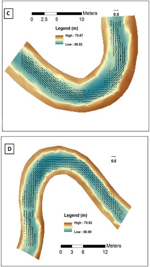 - Blanckaert, K. Hydrodynamic processes in sharp meander bends and their morphological implications. J. Geophys. Res. Earth Surf. 2011, 116. [Google Scholar] [CrossRef]