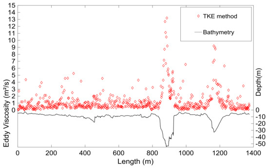 Eddy viscosity distribution over the cross-section, using the TKE method.