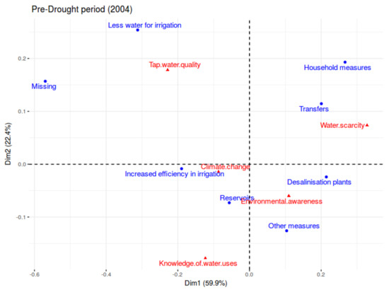 Correspondence analysis: context variables and public preferences concerning water management policies in the pre-drought period (2004). Source: Authors’ own after EBA 2004–2013 (IESA-CSIC).