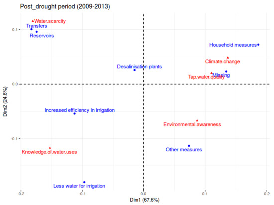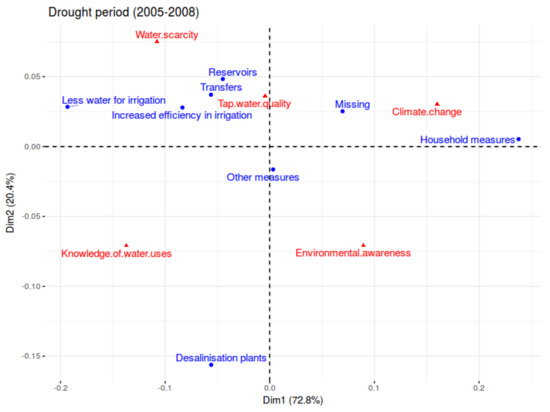 Correspondence analysis context variables and public preferences concerning water management policies in the post-drought period (2009–2013). Source: Authors’ own after EBA 2004–2013 (IESA-CSIC).
