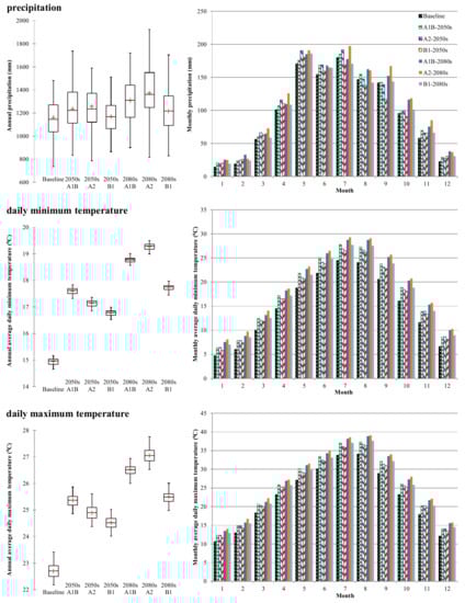 This work estimated the responses of watershed hydrochemical processes to projected future climate scenarios. The following three main conclusions can be drawn from the results of the present study: