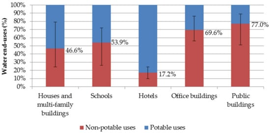 Figure 2. Potable and non-potable water end-uses in different types of buildings in Brazil.