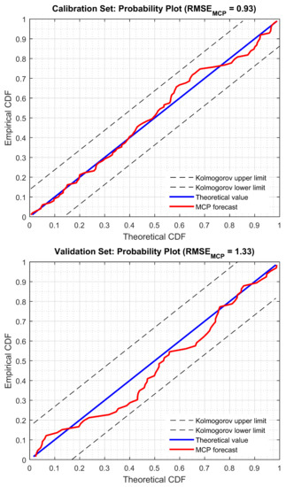 Calibration and Validation sets: 5% probability acceptance limits for MCP prediction.