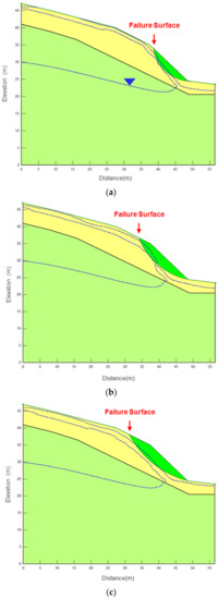 - Sun, G.; Yang, Y.; Cheng, S.; Zheng, H. Phreatic line calculation and stability analysis of slopes under the combined effect of reservoir water level fluctuations and rainfall. Can. Geotech. J. 2017, 54, 631–645. [Google Scholar] [CrossRef]