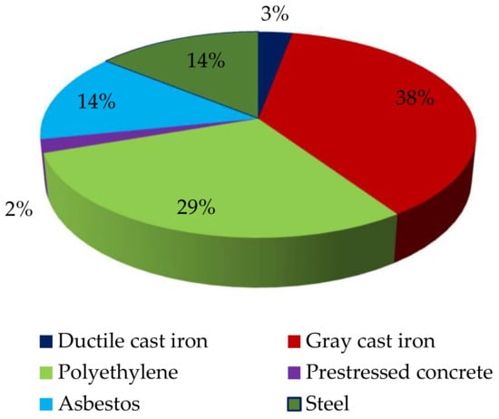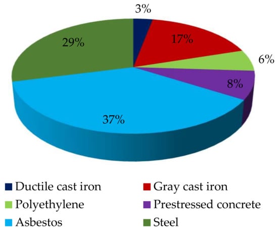 Figure 2 shows that the largest water losses are recorded in asbestos pipes. Additionally, Figure 1 shows that the asbestos pipes have only a 14% share.