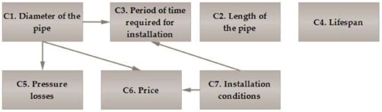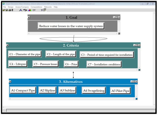 Nedjatia and Izbirak [54] assert that, for the decision-making process, when using qualitative and uncertain values, the use of the ANP method is preferable to the AHP method, so for the choice of pipeline rehabilitation technologies in water distribution systems, we propose the use of the ANP method.