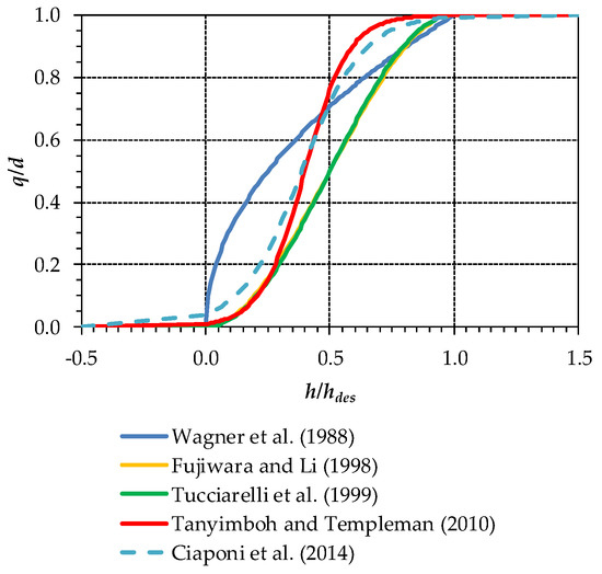 In the formulations of Wagner et al. [9], Fujiwara and Li [12], and Tucciarelli et al. [13], q/d = 0 and q/d = 1 for h ≤ hmin and h ≥ hdes, respectively.