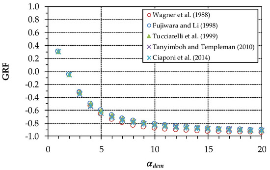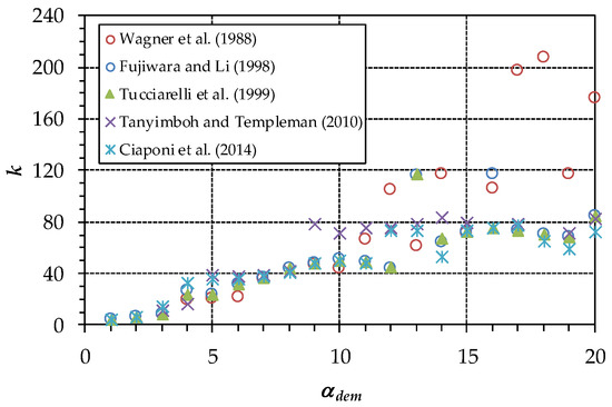 The other formulations behave similarly to Wagner et al. [9] up to αdem = 10. Above this value, they tend to converge faster, that is with lower values of k. This seems to suggest that the other formulations suffer from the increase in αdem less than the Wagner et al. [9] formulation.