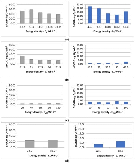 kdeSCOD—indicator of efficiency of ∆SCOD yield, mg O2·L−1 Wh−1.