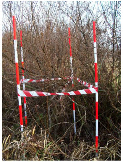 A full inventory of vegetation consisting of measuring all shrubs and bushes is not possible. However, the method of shrub inventory that lies in testing not all of the studied area, but only a part of it (i.e., a test area), can be used. The application of the statistical method of plant inventory makes it possible to determine plant parameters for both small and larger areas. This method consists in drawing conclusions with regard to geometrical parameters based on a sample taken in accordance with the principles of mathematical statistics [57]. Statistical inventory consists of measuring an arbitrarily large number of taxonomic features at strictly defined points. It is assumed that the value of each feature measured on a given surface is treated as the value of a random variable. The standard error of the estimate of plant parameters cannot exceed the assumed error tolerance. The number of test areas, in accordance with de Vries [57], was estimated at n = 3. The size of test areas should depend on local conditions in such a way as to measure the optimal number of shrubs and bushes, both from the point of view of the costs of fieldwork and for the accuracy of the results. For willow bushes, where the average number of branches is L = 100 pcs/m2, and the appropriate number of branches that need to be tested should vary from 50 to 100 pieces, the optimal size of the test area is 0.5 to 1 m2.