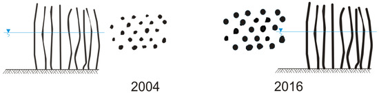 Simulation diagram of the vegetation grown uncontrollably at the beginning (2004) and the end (2016) of observations.