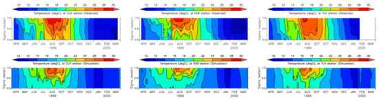 It has been considered that the rate of reaeration is proportional to the DO deficit as , where is the reaeration coefficient, is the saturated concentration of DO in air, and is the DO concentration at the surface grids of the water column [20].