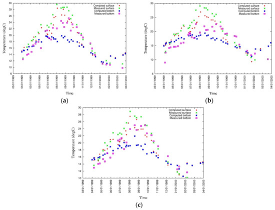 The model boundary conditions were considered at the bay mouth, free water surface, and bottom of the water column. At the bay mouth tidal level, water temperature and salinity were given. At the surface boundary, the model was forced by meteorological data, which includes rainfall, air temperature, solar radiation, air pressure, vapor pressure, relative humidity, cloud cover, wind vector, and instantaneous tidal motion. At the surface boundary, the pseudo velocity was set to zero, and the tangential stress at the free surface along the horizontal direction was made equal to the wind stress. At the sea bottom boundary, the pseudo velocity was set to zero, and the quadratic dependence of the bottom stress on the velocity has been considered. At lateral wall boundaries, normal velocities have been set to zero and free-slip conditions have been applied for the friction terms.