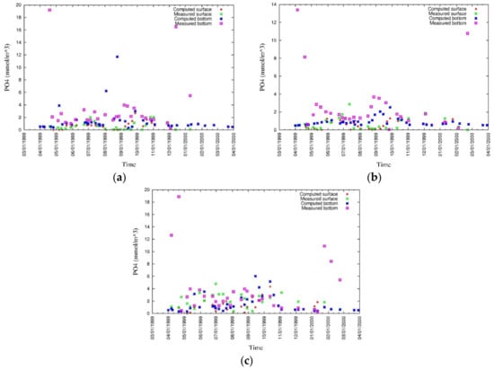 It is well-known that water quality depends not only on hydrodynamic forces but also on biogeochemical processes of the ecosystem [21]. Moreover, in shallow estuarine and coastal areas, sediment biogeochemical processes have a strong impact on the overall dynamics of the estuaries and coastal systems, especially on bottom water [17,22,23,24]. Hence, a critical aspect of water quality modeling, particularly for long-term predictions and for considering measures against hypoxia and anoxia, is the accurate estimation of sediment quality. Thus, water quality modeling, especially for long-term predictive models, should include a 3D, layer-resolved, and detailed sediment processes, including sediment bed formation and benthic–pelagic coupling [18,24,25,26].