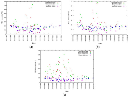 - Fennel, K.; Wilkin, J.; Levin, J.; Moisan, J.; O’Reilly, J.; Haidvogel, D. Nitrogen cycling in the Middle Atlantic Bight: Results from a three-dimensional model and implications for the North Atlantic nitrogen budget. Glob. Biogeochem. Cycles 2006, 20, GB3007. [Google Scholar] [CrossRef]