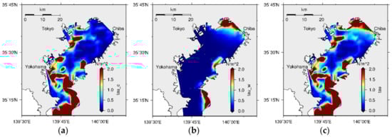 - Fujiwara, T.; Yamada, Y. Inflow of oceanic water into Tokyo Bay and generation of a subsurface hypoxic water mass. J. Geophys. Res. Oceans 2002, 107, 1–13. [Google Scholar] [CrossRef]