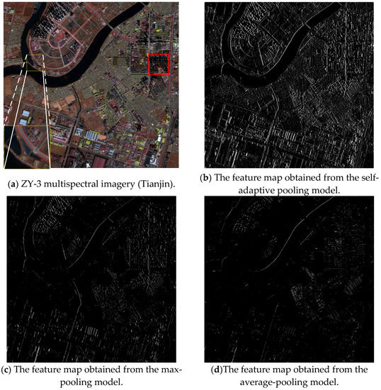 From Figure 4b–d, the feature map obtained from the adaptive pooling model has obvious features, but the max pooling model and the average pooling model weaken the image features.