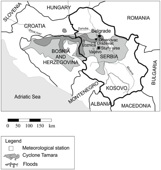 Serbia had previously been hit by an extremely wet period, with abundant precipitation. Between 14 April and 5 May 2014, most of Serbia reported 120–170 mm of rainfall, or nearly four times the average totals during the same period. Average annual precipitation in Serbia increases with altitude: in the lowlands the annual total is in the interval from 540 and 820 mm, elevations above 1000 m receive 700–1000 mm on average, and the mountainous regions of southwestern Serbia as much as 1500 mm []. As such, the soil was already saturated when the disastrous rainfall hit Serbia from 13 to 15 May, causing river stages and water tables to rise. There was extensive soil erosion and more than 1000 major landslides were recorded []. Many cities reported record daily precipitation levels. Over 30 h, the amount of rainfall equaled three-month averages: Loznica (175 mm), Valjevo (146 mm) and Belgrade (144 mm).