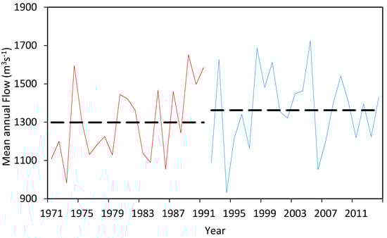 - Seyam, M.; Othman, F. Long-term variation analysis of a tropical river’s annual streamflow regime over a 50-year period. Theor. Appl. Climatol. 2015, 121, 71–85. [Google Scholar] [CrossRef]