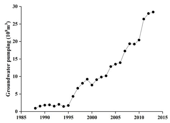 Groundwater pumping during 1988–2013 in the Naoli River Basin, Northeast China.