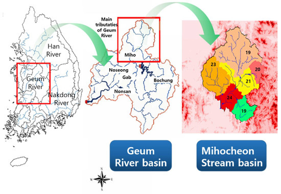Sub-basins in the Mihocheon stream basin.