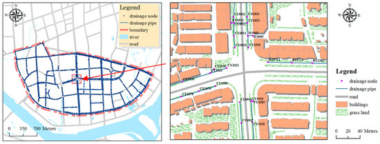 The difficulty of hydrologic simulation lies in the spatial discretization (see Section 3.1) and setting of parameters. Generally, flood modeling requires the preparation of four sets of data. The first dataset comprises hydrologic data, especially local historical rainfall data or simulated rainfall data designed by formulas. The second dataset includes drainage network data, e.g., the lengths and diameters of the underground drainage pipes within the study area and the depths of rainwater wells. The third dataset consists of the details of the underlying surface, such as the slope and impermeability of each subcatchment, which determine the surface runoff process. The fourth dataset defines the boundary attributes of the outlet nodes that connect to storage units or rivers.