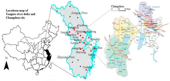 Geographical location of Changzhou city in the Yangtze river delta region, China.