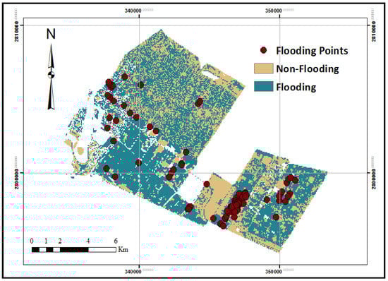 In this study, the AHP was utilized to weight each thematic factor separately based on its importance. The weighting was accomplished based on a literature review and an expertise survey. The weights for the three factors were as follows: 60% for the excess water, 20% for the elevation, and 20% for the slope. To validate the generated flood maps, 99 points related to in-site flooding measurements were collected during the rainy seasons using Trimble Geo7© Handheld GPS and the generated flood maps and collected flood data were compared.
