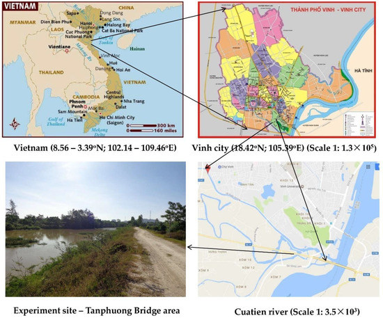 Since the 1990s, the economy of Vietnam has experienced a very rapid development. As a result, existing construction technologies in the country have not been able to keep up with the demand of a more modern urban infrastructure [1]. Urban river ecosystems and their quality in Vietnam has been severely affected due to industrial activities, rapid urbanization, which has led to several negative effects on human health and the environment [1,2]. Ecological revetment is one of the effective, cost-efficient, sustainable eco-technologies that can be used to restore urban ecological systems. Vinh city is among the rapidly-developing cities in Vietnam [2], where effective urban development planning and more efficient construction technologies are required for flood control and environmental protection.
