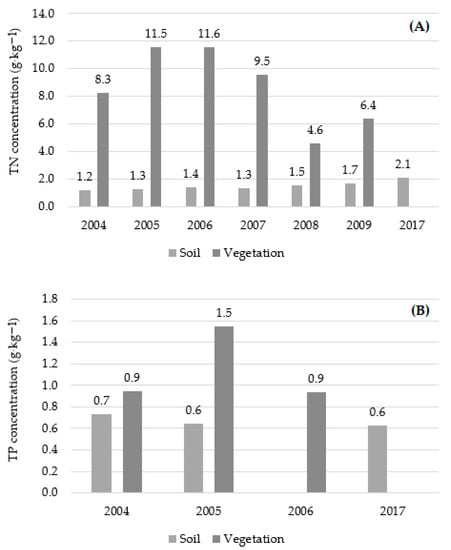 | Total nitrogen (g·kg−1) * | 3.5 ± 0.4 (4) a | 1.6 ± 0.1 (4) b | 1.2 ± 0.0 (4) b,c | 1.0 ± 0.1 (4) b,c | 0.9 ± 0.2 (4) c | - | - |