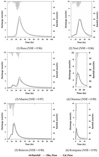 Typhoons are the main natural disaster in Korea. In recent years, Korea has experienced an increased frequency and strength of typhoons and an increase in the resulting damage [1,2]. The maximum annual flood peak historically is often caused by heavy rainfall in the wet season (“Changma”) as well as typhoons; however, since 2002, typhoons are perceived to have become the main source of flood risk, while the Changma has become less influential in Korea. Estimation of typhoon-induced flood hydrographs and associated flood peaks is therefore considered to be increasingly important for engineering applications, such as design of civil engineering structures, stabilization of river banks and flood warning and management.