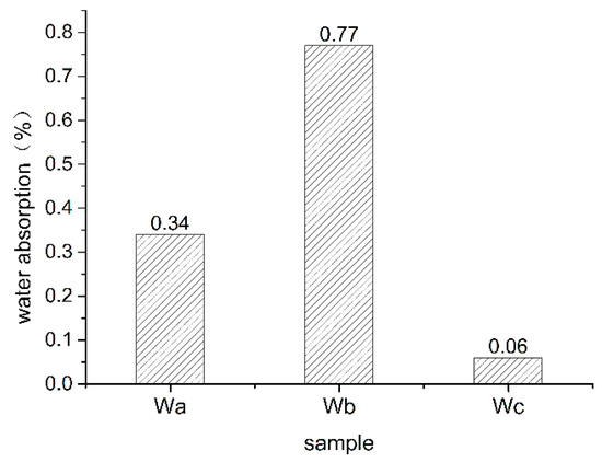 Figure 2. Average water absorption of oil shale at different heating temperatures (Wa, Wb, Wc, respectively, represent oil shale heated to 300 °C, oil shale heated to 500 °C, and unheated oil shale).