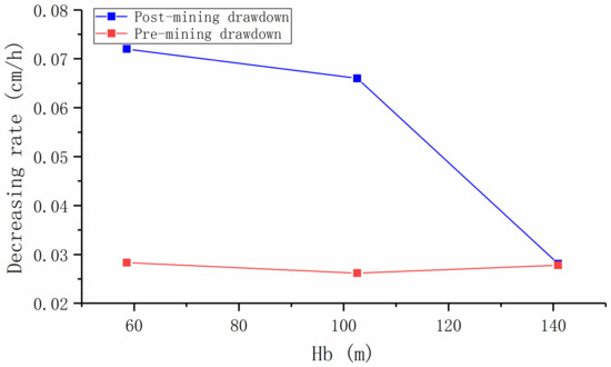 Relationship between the drawdown and Hb before and after mining.