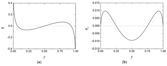 The O(ε,0,0) shapes of the dimensionless (a) cross-flow free-surface and (b) cross-flow flux.