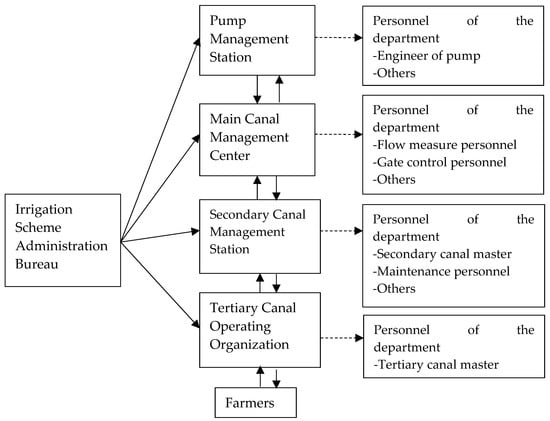 The timely availability of water for crops has greatly contributed to local agricultural and economic development in JMIS, and the irrigation scheme has formed a systematic irrigation water management mode. The irrigation water management in JMIS includes two procedures, namely water allocation and water delivery. Water allocation refers to the process where farmers allocate irrigation water to crops according to traditional irrigation experience and submit their orders to the managers of the irrigation scheme. Water delivery refers to the process where the managers of the irrigation scheme operate the irrigation water delivery system to supply water to crops according to farmers’ water orders, and it is mainly affected by the physical system and operational decision of canals.
