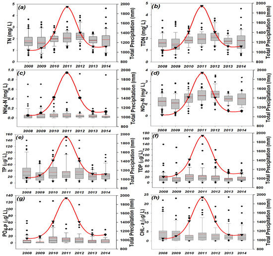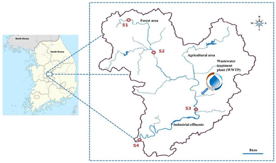 - Choi, J.W.; Han, J.H.; Park, C.S.; Ko, D.G.; Kang, H.I.; Kim, J.Y.; Yun, Y.J.; Kwon, H.H.; An, K.G. Nutrients and sestonic chlorophyll dynamics in Asian lotic ecosystems and ecological stream health in relation to land-use patterns and water chemistry. Ecol. Eng. 2015, 79, 15–31. [Google Scholar] [CrossRef]