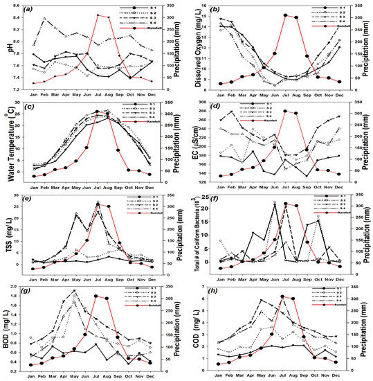 - Sood, A.; Singh, K.D.; Pandey, P.; Sharma, S. Assessment of bacterial indicators and physicochemical parameters to investigate pollution status of Gangetic river system of Uttarakhand (India). Ecol. Indic. 2008, 8, 709–717. [Google Scholar] [CrossRef]