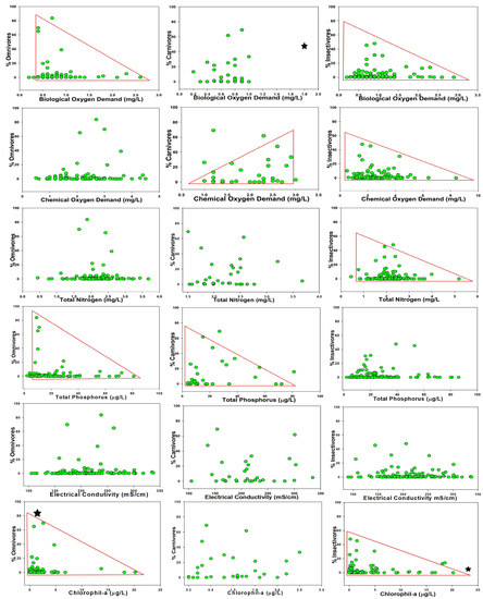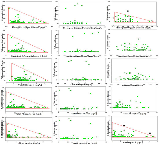 3.7. Responses of Trophic and Tolerant Guilds to Water Chemistry