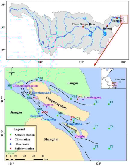 - Chen, J.; Xu, H. Impacts of the yangtze river threegorge hydroengineering works on the Yangtze Estuaky. Pesources Enuiron. Yangtza Valley 1995, 03, 242–246. [Google Scholar]