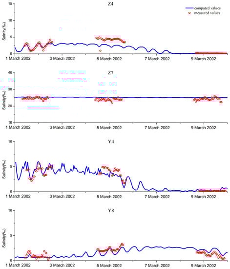 Four salinity tests of Z4, Z7, Y4 and Y8 were selected for salinity verification (Figure 6).